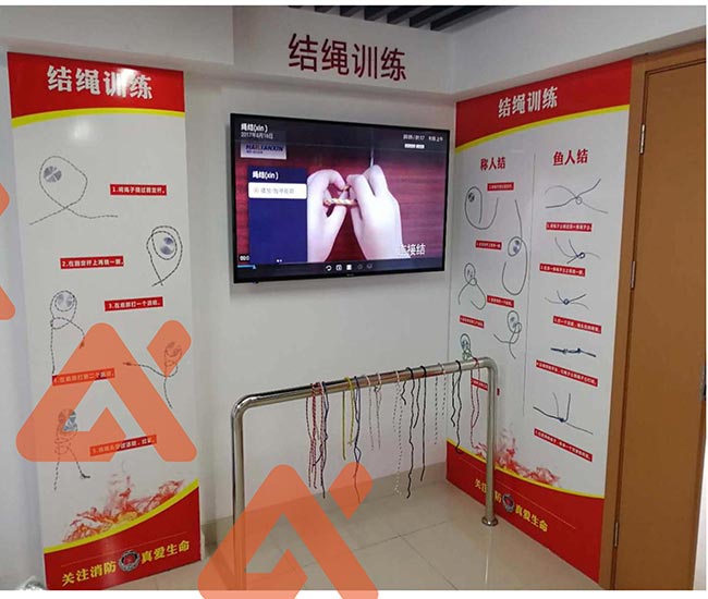 此外,該區(qū)域還配備有“消防器材認(rèn)知系統(tǒng)”“逃生繩打結(jié)教學(xué)體驗(yàn)系統(tǒng)”“消防VR體驗(yàn)”等,可以為參觀群眾提供全面的消防安全教育。