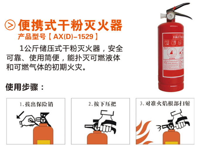 1、滅火器。簡(jiǎn)易式干粉滅火器,能撲滅普通的固體材料火、可燃液體和氣體的初期火災(zāi),用于家庭初期火災(zāi)的控制。