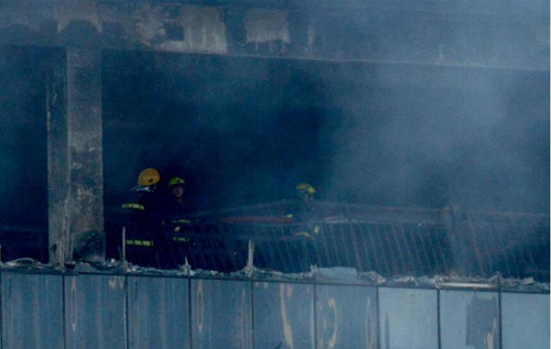 有目擊者稱,現場曾傳出多次爆炸聲,曾有人在樓頂呼救,因為火情嚴重,有人從樓頂試圖順著管子爬下樓,但失手從5樓掉了下去。