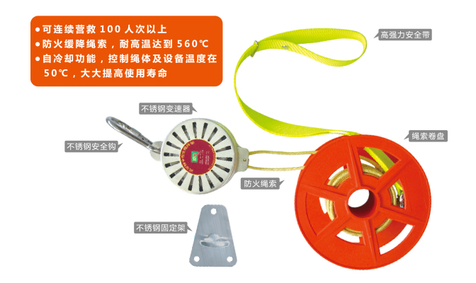 "安心"牌自冷卻高層樓宇救生緩降器擁有3項專利,其獨特的自冷卻功能,杜絕了緩降過程中因高溫造成的卡死現(xiàn)象,緩降繩索具有防火阻燃特性,230攝氏度高溫條件下可長期使用,解決了100米高層火災(zāi)逃生的問題。