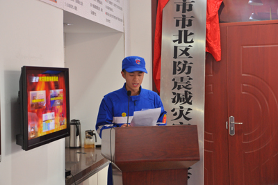 地震志愿者救援隊(duì)志愿者代表上臺(tái)發(fā)言