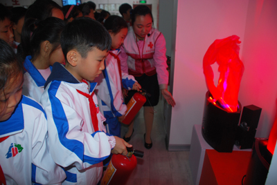 洛陽(yáng)路第一小學(xué)的學(xué)生爭(zhēng)相體驗(yàn)119火災(zāi)模擬系統(tǒng)