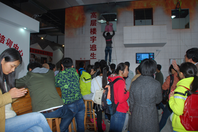 理工大學(xué)的學(xué)生親身體驗(yàn)高層樓宇緩降器
