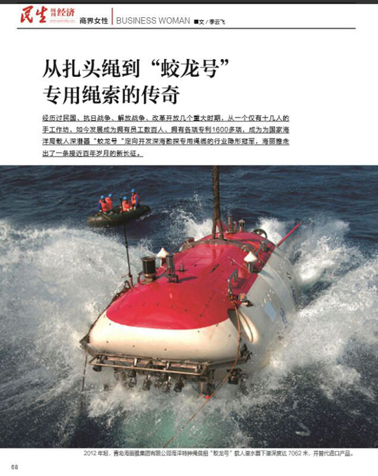 青島海麗雅集團94年專注一根繩子,在傳統(tǒng)與創(chuàng)新之間尋求突破,不斷為繩纜注入科技力量。公司完成了從純手工生產(chǎn)扎頭繩到為國家海洋科考船“大洋一號”、載人潛水器“蛟龍?zhí)?rdquo;等尖端領域研發(fā)、配備高科技特種繩纜,再到應急自救產(chǎn)業(yè)的進化,實現(xiàn)了從“中國制造”到“中國質造”。