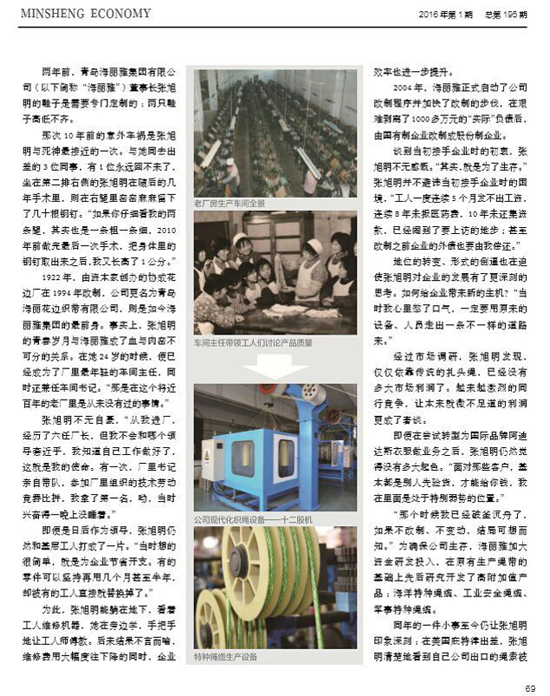 2016年3月,人民日報《民生周刊》增設了“商界女性”專欄。經(jīng)過中國女企業(yè)家協(xié)會推薦,海麗雅集團董事長張旭明成為該專欄首位中國女企業(yè)家。期刊在全國“兩會”期間向公眾呈現(xiàn)百年企業(yè)的傳奇發(fā)展歷程。
