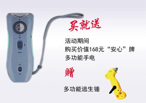 滿500元即可獲贈”安心“牌多功能逃生錘、醫(yī)療包、水系滅火器、打火線任意1件。