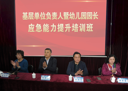 2016年12月20日,青島市首期基層單位負(fù)責(zé)人暨幼兒園園長(zhǎng)應(yīng)急能力提升培訓(xùn)班在青島市應(yīng)急安全體驗(yàn)培訓(xùn)中心舉行開(kāi)班儀式。青島市人民政府應(yīng)急管理辦公室主任張建剛、青島市教育局安保處處長(zhǎng)孫建國(guó)出席并發(fā)表致辭。青島市教育局基礎(chǔ)教育處調(diào)研員李世霞、青島市應(yīng)急自救產(chǎn)業(yè)技術(shù)創(chuàng)新戰(zhàn)略聯(lián)盟理事長(zhǎng)、青島海麗雅集團(tuán)董事長(zhǎng)張旭明出席開(kāi)班儀式。