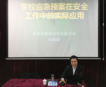 市教育局安保處處長(zhǎng)孫建國(guó)為學(xué)員授課《學(xué)校應(yīng)急預(yù)案在安全工作中的實(shí)際應(yīng)用》