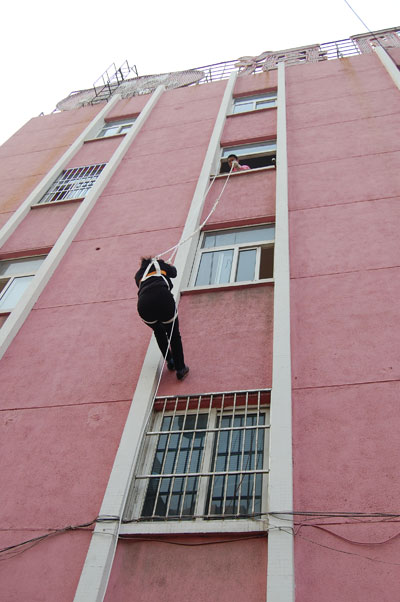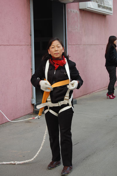 2010年11月19日下午,青島億和海麗高強力安全防護用品有限公司開展了高空火災防護自救互救演習。57歲的梁子蘭率先從高空使用救生緩降器安全下落到地面,并給大家現(xiàn)場講解使用方法,活動吸引了大批市民參與并現(xiàn)場觀摩。