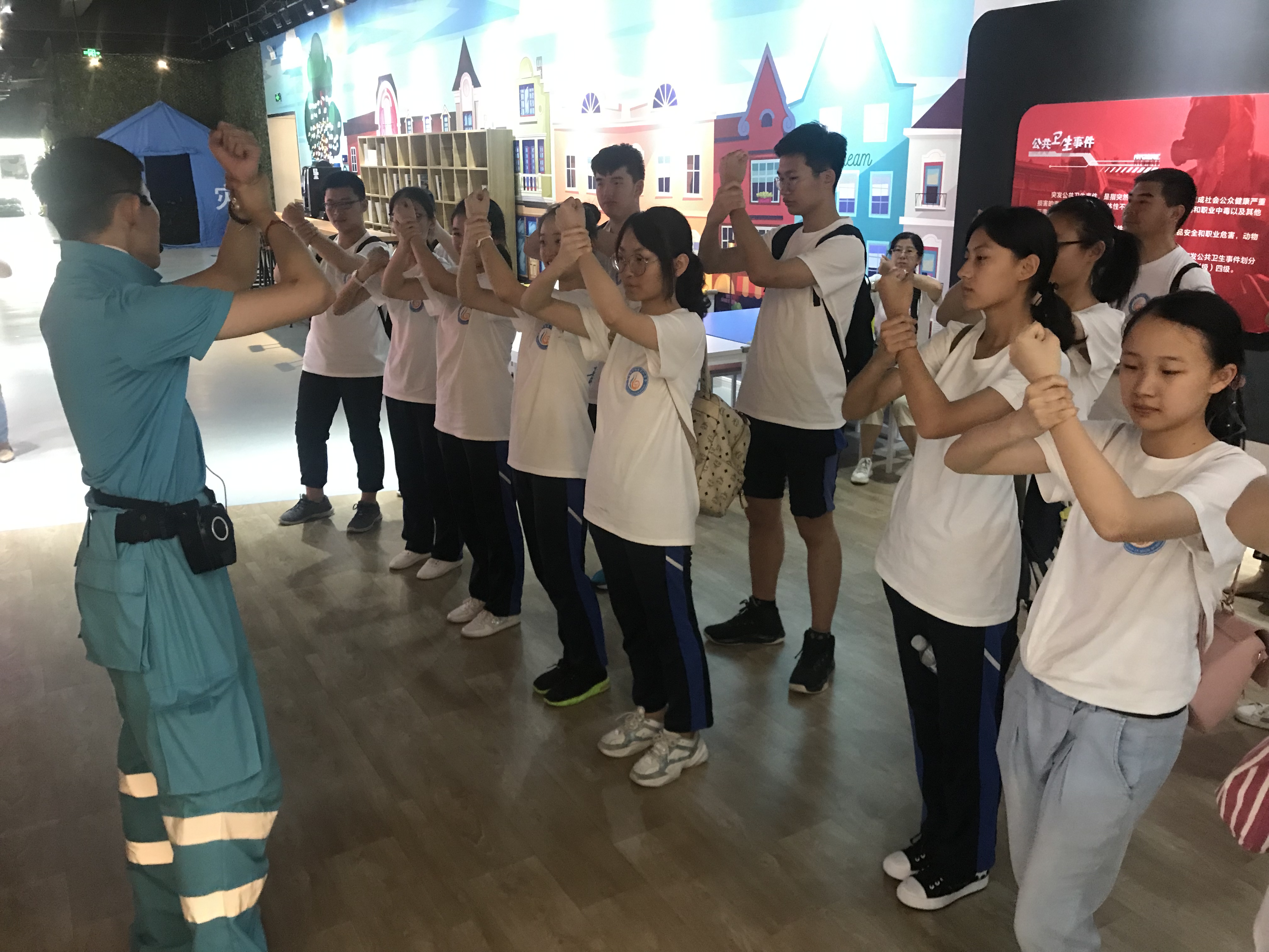 下午的安全應(yīng)急體驗(yàn)課程來到了青島西海岸新區(qū)應(yīng)急安全體驗(yàn)教育基地。在基地老師的帶領(lǐng)下,老師、家長、學(xué)生一起積極參與互動,在地震、暴風(fēng)雨、火災(zāi)等 災(zāi)難體驗(yàn)館內(nèi)感受災(zāi)難的真實(shí)場景,學(xué)習(xí)高空逃生方法,親歷高空逃生過程,在VR場景中排查安全隱患,零距離體驗(yàn)急救過程,深刻學(xué)習(xí)到毒品和濫用藥物的危害等,通過這種共同體驗(yàn)式學(xué)習(xí)活動,不僅學(xué)習(xí)到了生動鮮活的安全知識,還掌握了心肺復(fù)蘇、簡易擔(dān)架制作、安全繩結(jié)等應(yīng)急自救互救知識與技能。