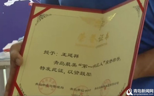 2019年7月30日,青島市應(yīng)急管理局、青島市紅十字會、青島海麗雅集團(tuán)共同為島城跳海救人“超人”王延祥送上青島“第一響應(yīng)人”獎勵基金和證書.