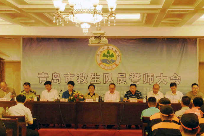 2012年6月24日,青島市救生協(xié)會舉行了救生隊員誓師大會暨國家職業(yè)資格游泳與救生培訓鑒定儀式。民盟青島市委副主委江玉民、青島市體育總會主席林志偉等領導出席本次活動。
