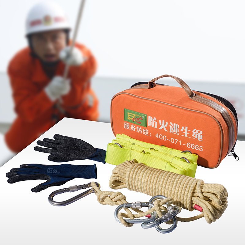 火災(zāi)高空逃生繩內(nèi)芯采用鋼絲,外包由尼龍線編織而成,下降時中途遇到火情不易燒斷,依然可以自行緩慢下降,保證了逃生安全。