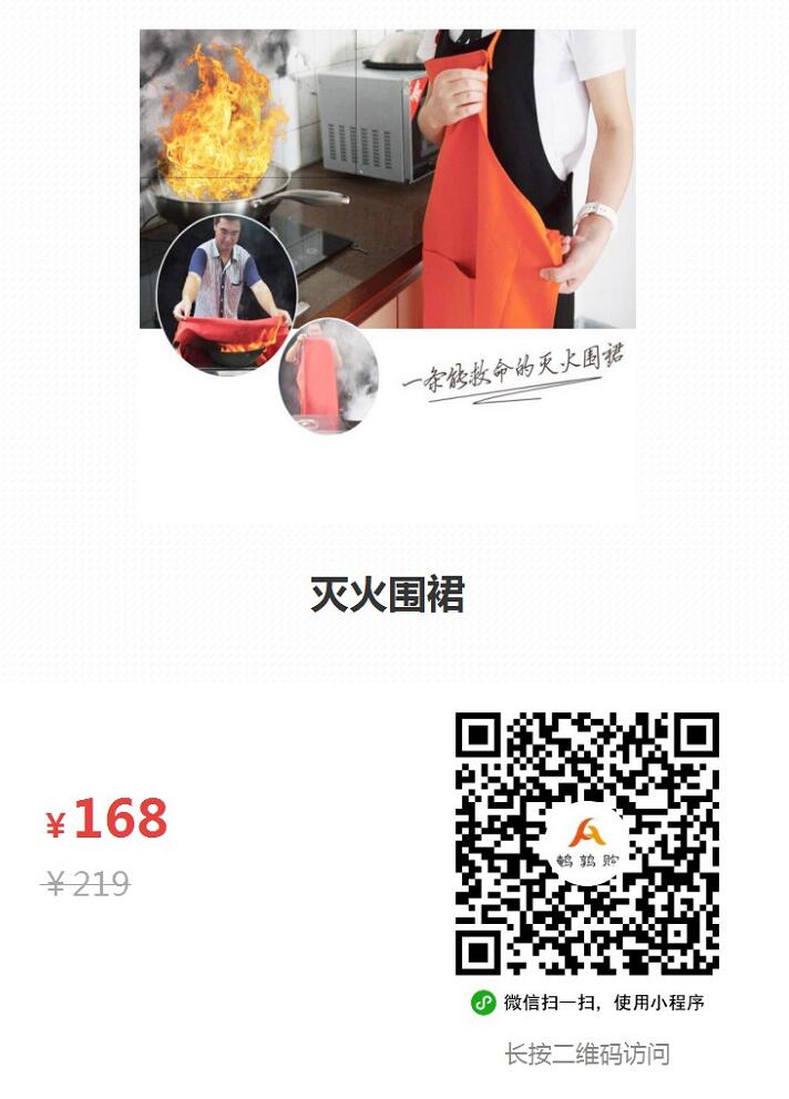 事情發(fā)生后,很多鄰居咨詢王阿姨您的滅火圍裙哪里買(mǎi)的,現(xiàn)在小編就把它推薦給大家。