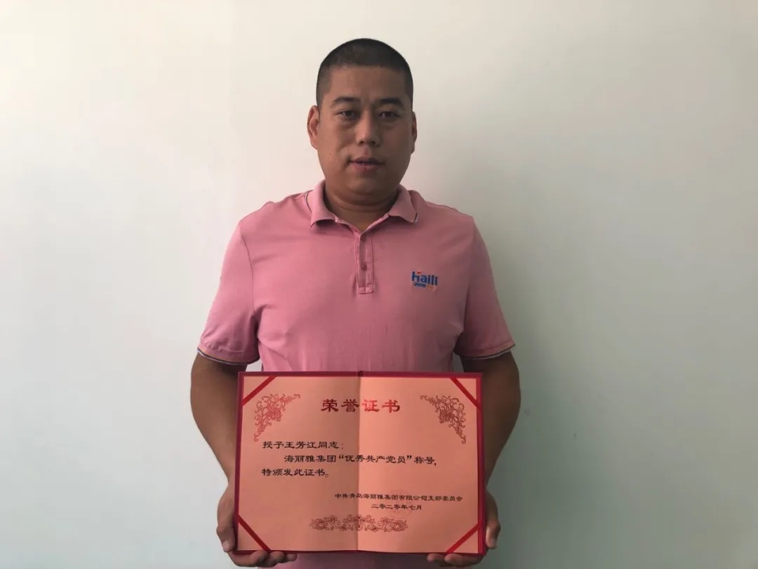 會上,還表彰了”2019年度海麗雅集團優(yōu)秀共產黨員“王芳江。王芳江同志,自入黨以來,始終堅持黨的信念,日常工作中嚴格按照黨員標準要求自己:在本職工作上,加班加點改造生產裝備,為公司節(jié)約了大量成本、提高了工作效率;在疫情期間,主動承擔黨員責任,不計個人安危,無私奉獻,成為海麗雅集團全體黨員的榜樣。