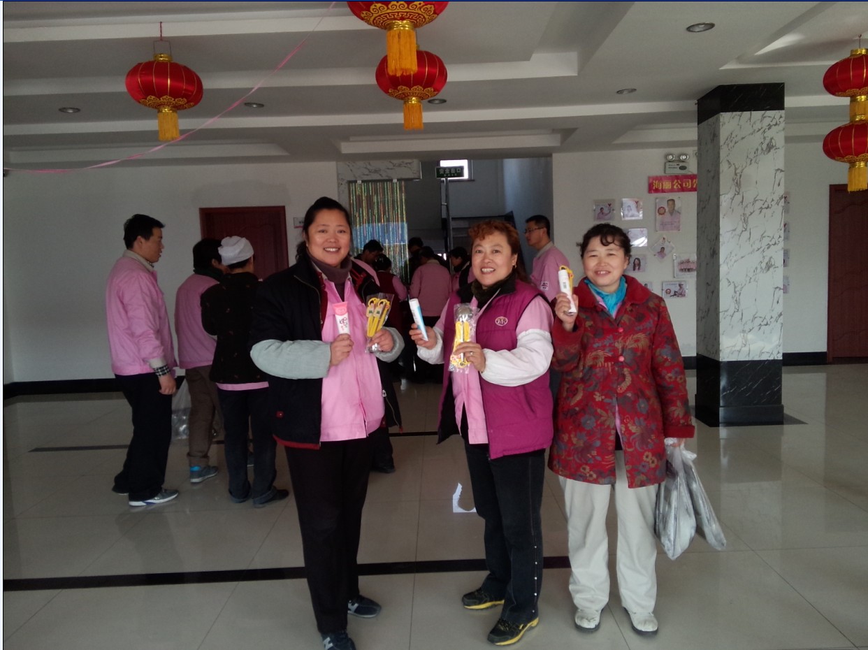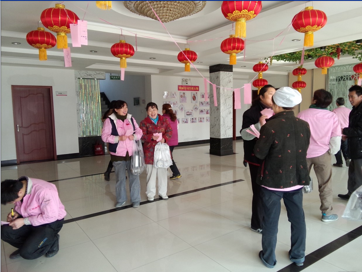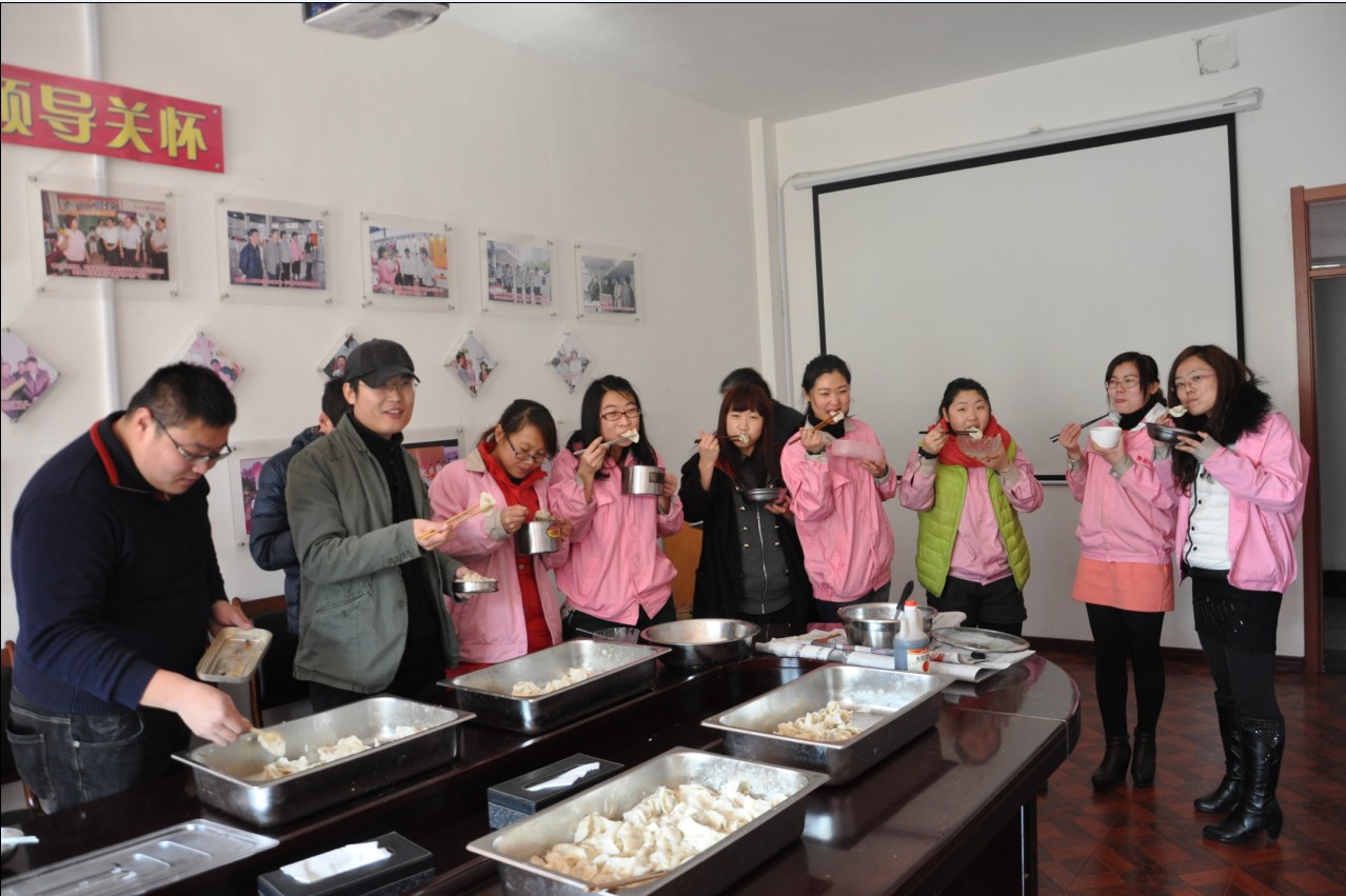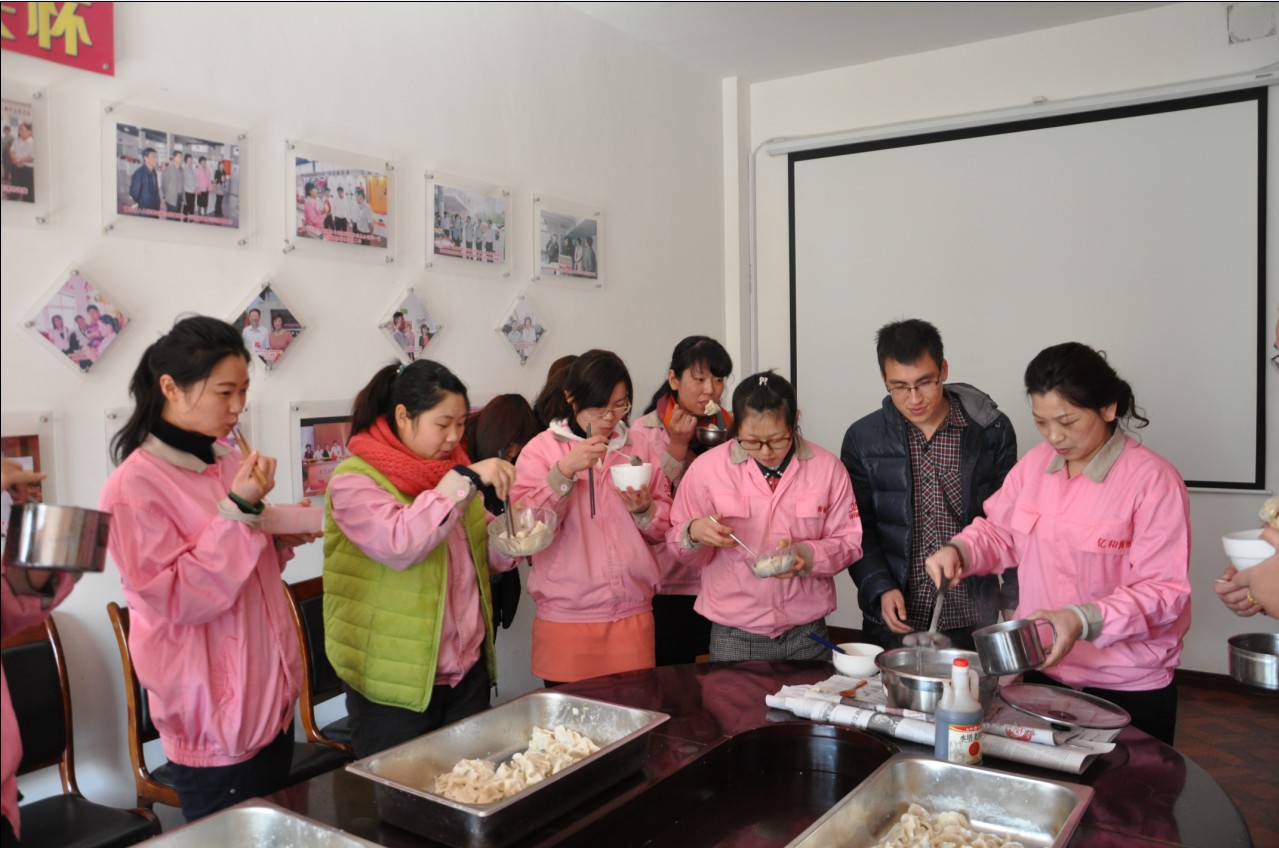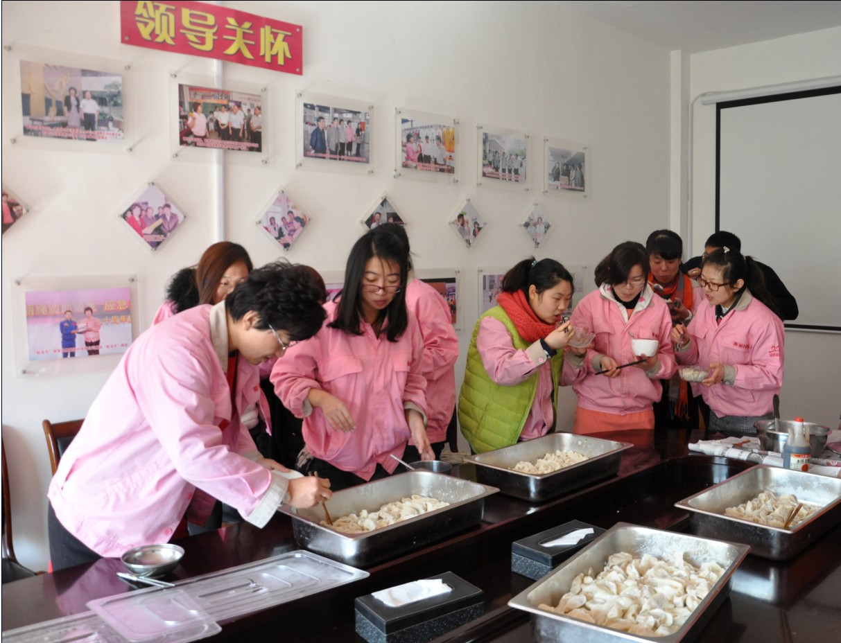 鬧元宵:“每逢佳節(jié)倍思親”, 節(jié)日當天,因公司非本市員工不能與家人團聚共渡佳節(jié),在董事長提議下,黨支部副書記、工委主席崔俊芬女士帶領(lǐng)大家一起,專門為外來務(wù)工人員和在公司住宿的大學(xué)生煮元宵、包水餃,并同大家一起過節(jié)。領(lǐng)導(dǎo)的體貼和關(guān)懷,讓大家切身感受到“海麗大家庭”的溫暖。