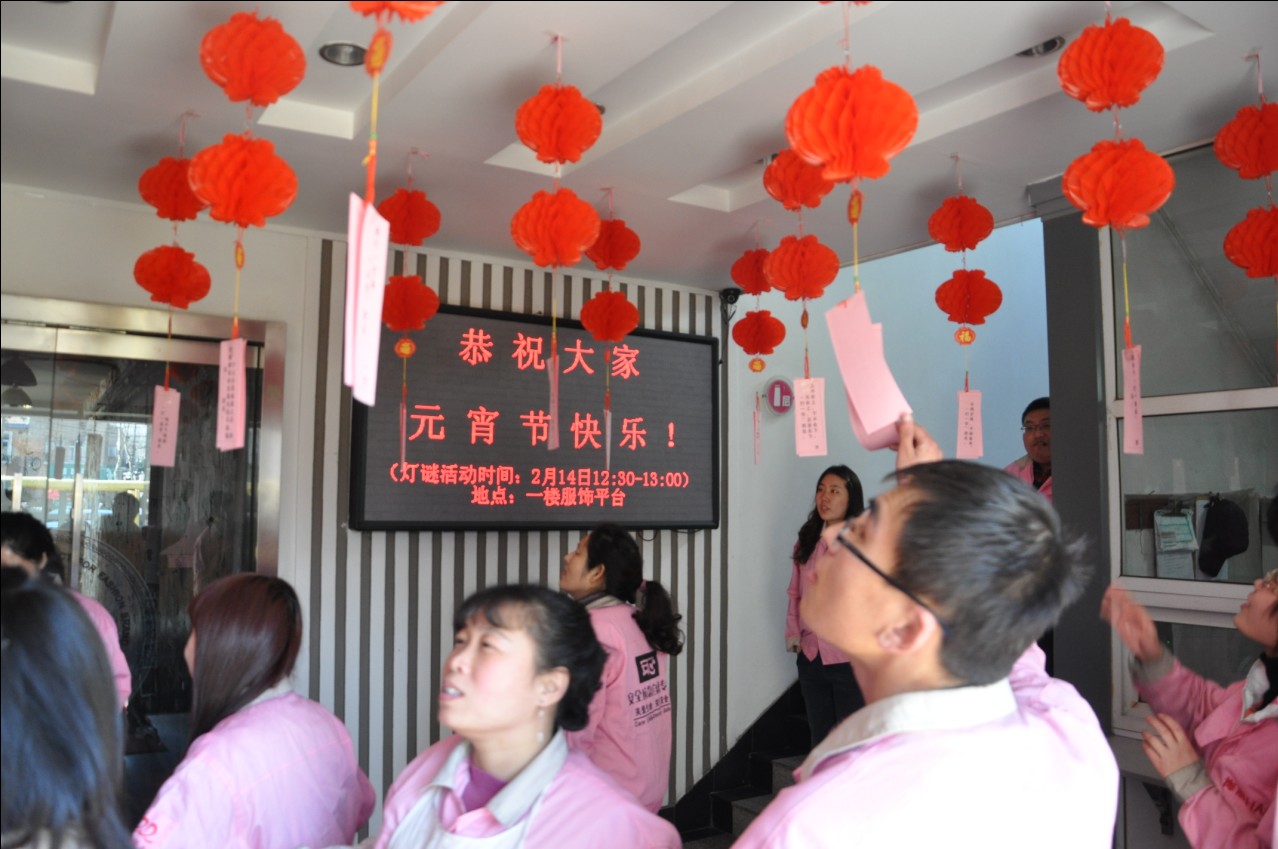 猜燈謎:元宵節(jié)當天,為濃厚節(jié)日氛圍,公司還組織了猜燈謎活動。活動中,大家積極動腦,爭相表現(xiàn),各憑自己的才情贏得了一份份精美獎品,并合影留念。
