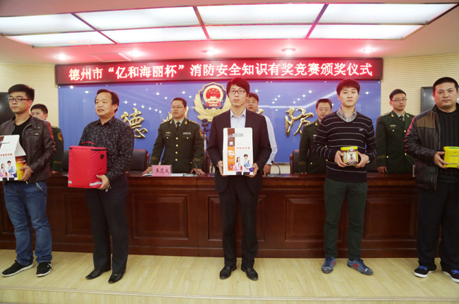 2014年3月25日“億和海麗杯”消防安全知識有獎競賽頒獎儀式在山東省德州市舉行,德州市消防支隊張保衛(wèi)高級工程師通報消防安全知識有獎競賽活動開展情況,青島億和海麗副總經(jīng)理楊光就本次活動發(fā)表了講話。