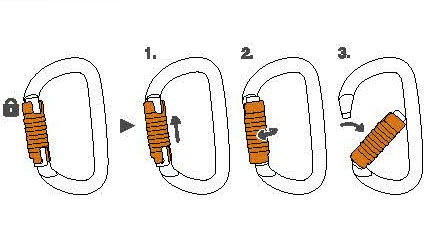 多向受力半圓型鎖扣用于連接安全帶和胸式上升器。有兩種上鎖系統(tǒng):自動鎖門和手動鎖門。