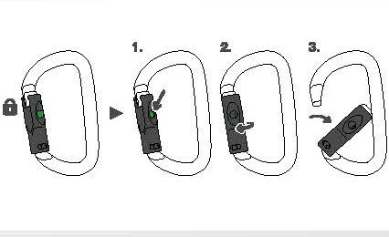 與下降器配合使用,固定桿能防止鎖扣翻轉,并保證其與裝備的連接。