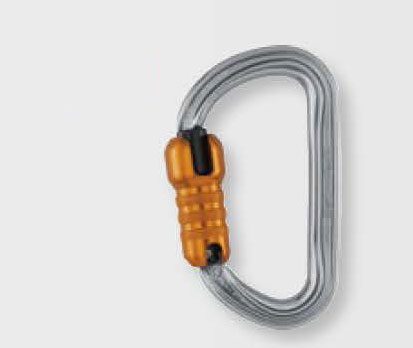 由鋁合金制成,它的橢圓外形可使較寬的裝備如滑輪、上升器和移動止墜器位于比較好的位置。流暢的內部設計讓使用更為簡便。它有多種上鎖系統(tǒng):自動鎖門或手動鎖門。可與固定桿配合使用,能使安全鉤在主軸受力,減少翻轉的風險,并保持與裝備的連接。