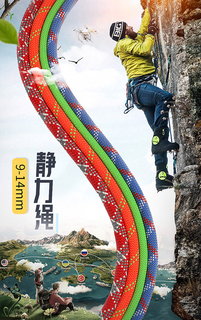 攀巖繩索采用高強(qiáng)杜邦絲材質(zhì),高強(qiáng)拉力,不易老化,張力控制精準(zhǔn),長(zhǎng)距離使用拉力損耗小。