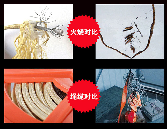 鋼芯繩由外層阻燃材質(zhì)和鋼絲內(nèi)芯組成,耐火耐高溫。
