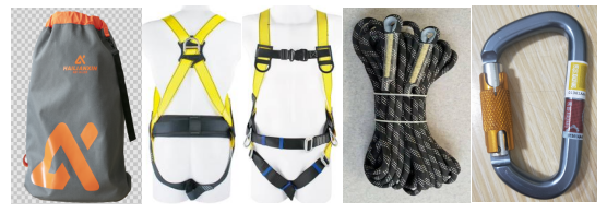 3、防護(hù)裝備組成明細(xì):1個(gè)收納包+1條全身式安全帶+1條10.5mm*10米靜力繩+2個(gè)航空鋁鎖扣。